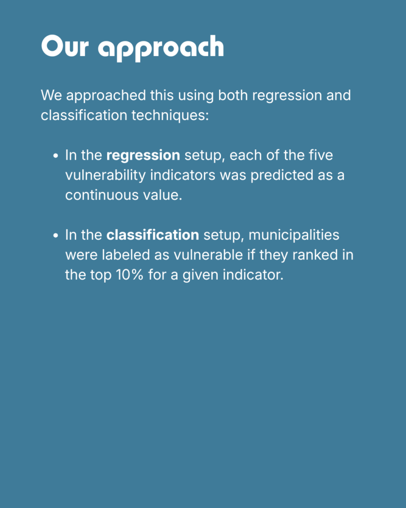 - How a comprehensive, municipality-level dataset was built by combining publicly available indicators with health-related vulnerability measures.